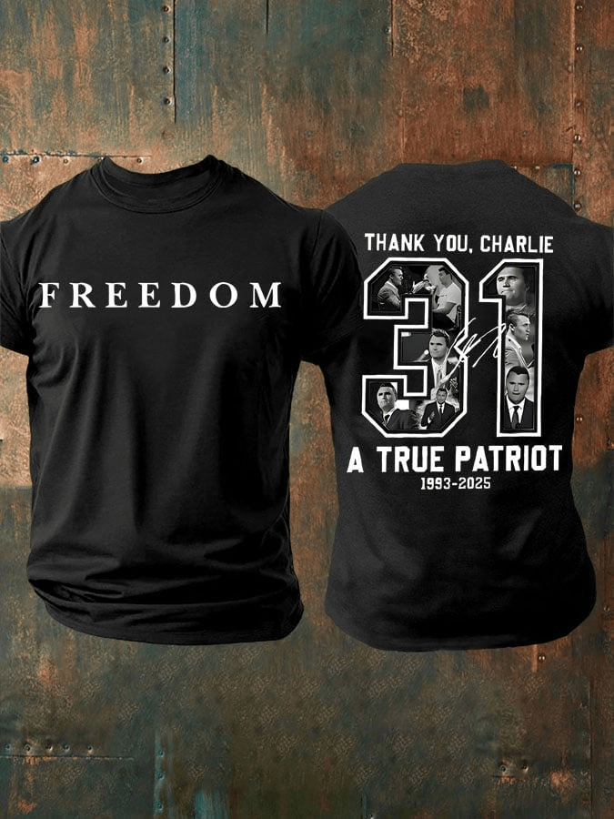 Charlie Kirk Merch Freedom T-Shirt Thank You Charlie A True Patriot Shirt TPUSA Merch Gifts Charlie Kirk Gift
