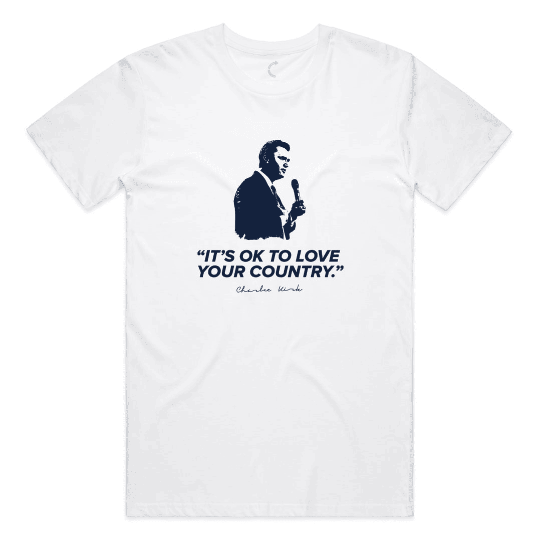 Charlie Kirk Merch It’s Ok To Love Your Country T-Shirt Charlie Kirk Memorial Shirt Gifts Tribute Gifts