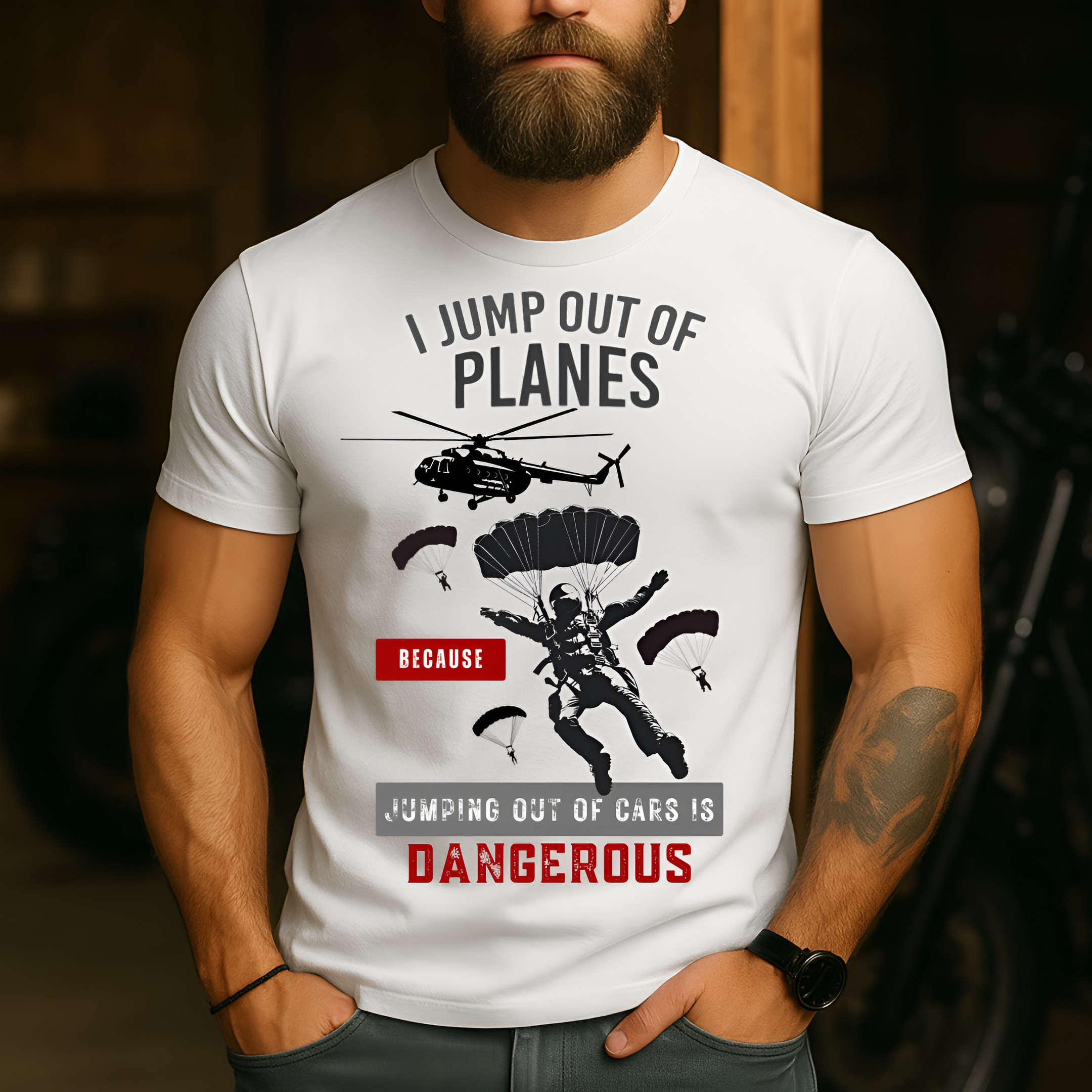 Airborne Paratrooper T-Shirt I Jump Out Of Planes Dangerous Military Aviation Veteran Gifts