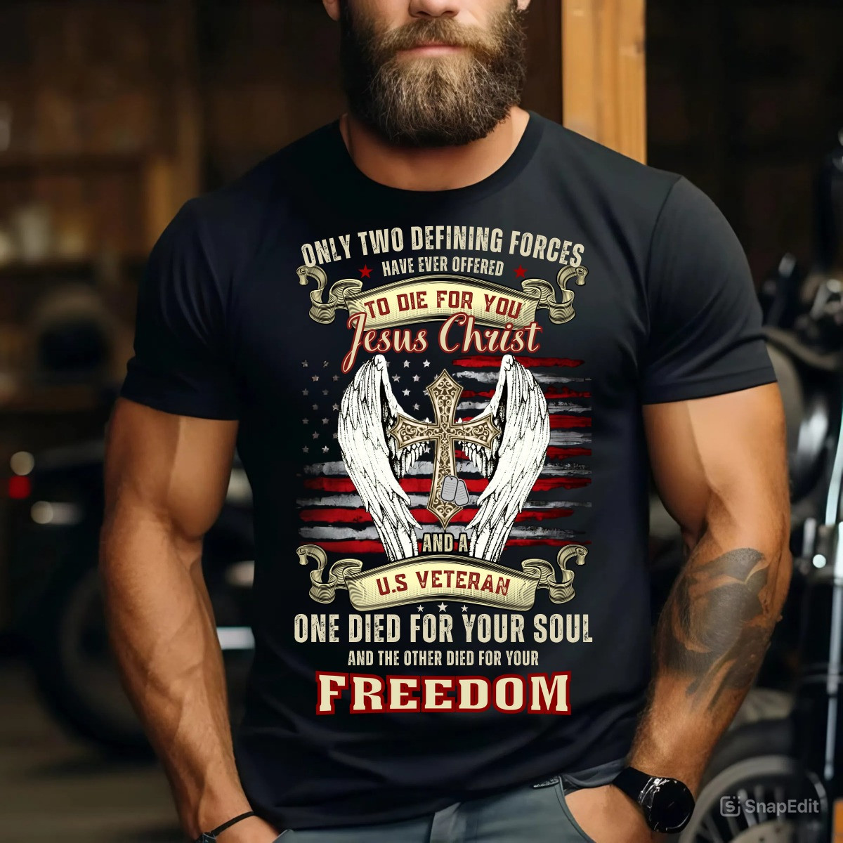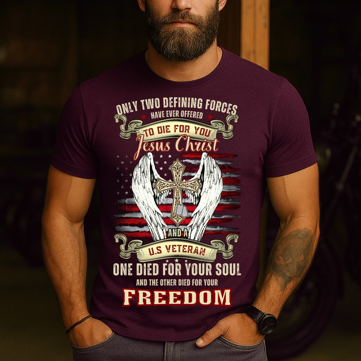 $29.99 – $35.99Price range: $29.99 through $35.99Cross Wings Jesus Christ U.S. Veteran T-Shirt Only Two Defining Forces Religious Tee Gifts