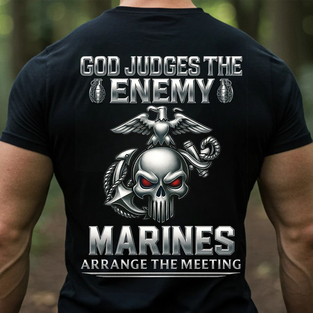 Eagle And Skull US Marines Veteran Shirt God Judges The Enemy USMC Veteran Pride Tee Gifts