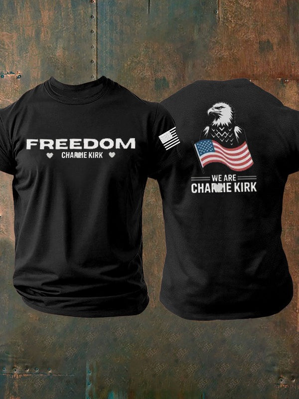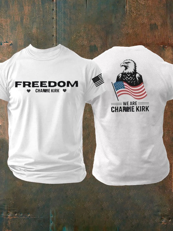 $29.99 – $35.99Price range: $29.99 through $35.99Eagle Freedom Charlie Kirk T-Shirt We Are Charlie Kirk USA Flag Memory Gifts For Men