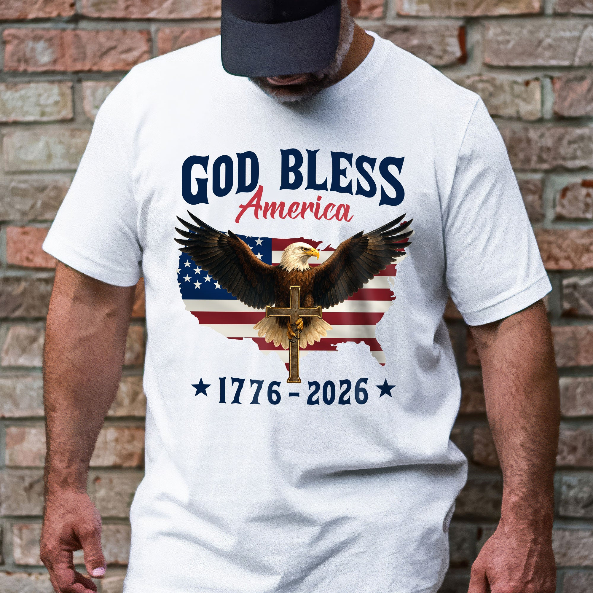 Eagle God Bless America T-Shirt Cross American Flag 1776 2026 Gift For Father In Law