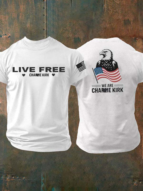 Eagle Live Free T-Shirt We Are Charlie Kirk Patriotic USA Flag Tee Political Gifts