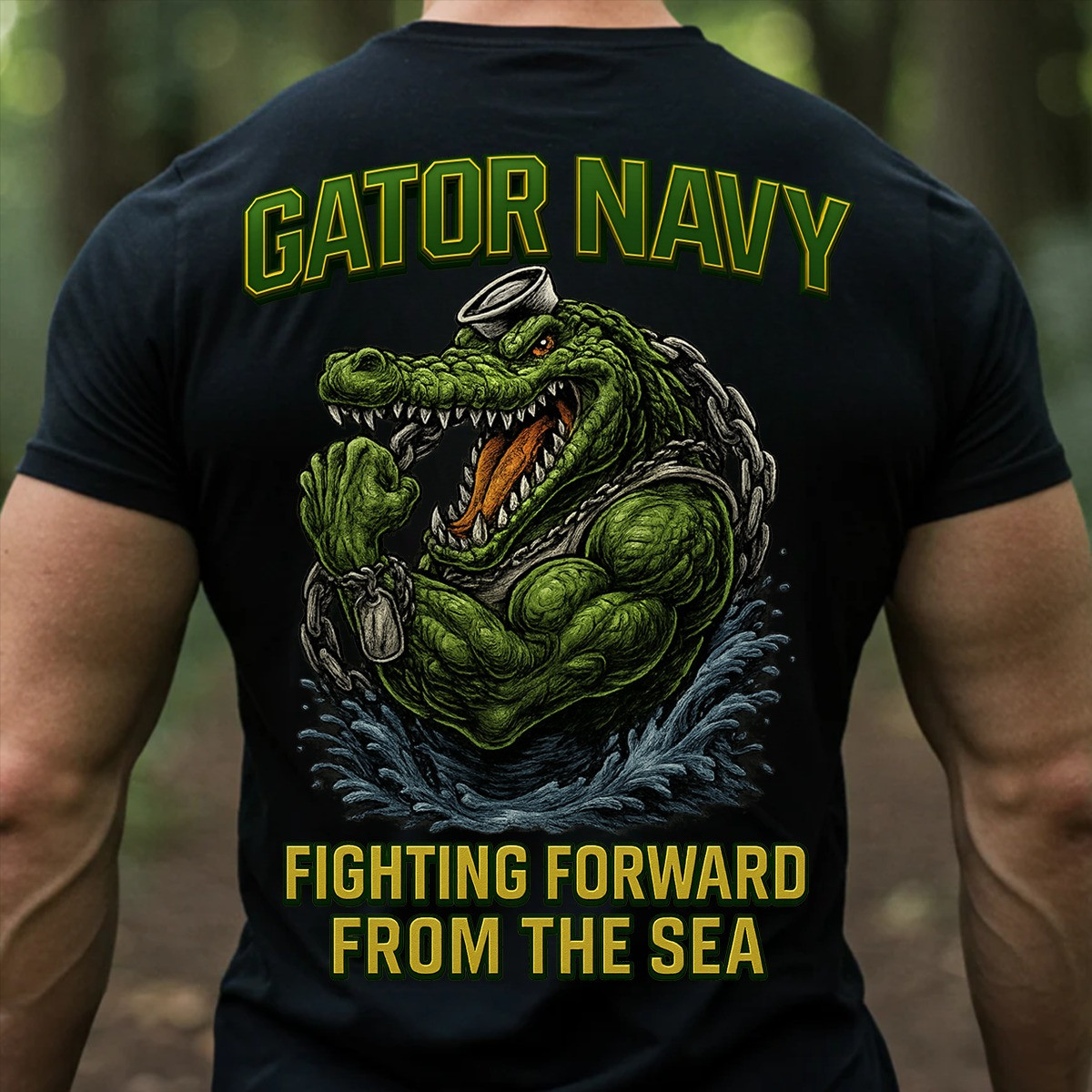 $29.99 – $35.99Price range: $29.99 through $35.99Gator Navy T-Shirt Fighting Forward From The Sea Military Veteran Merch For Sailors