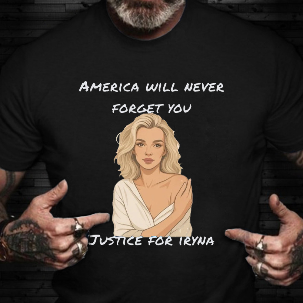 $24.95 – $30.95Price range: $24.95 through $30.95Justice For Iryna Zarutska Shirt America Will Never Forget You T-Shirt Memorial Gifts