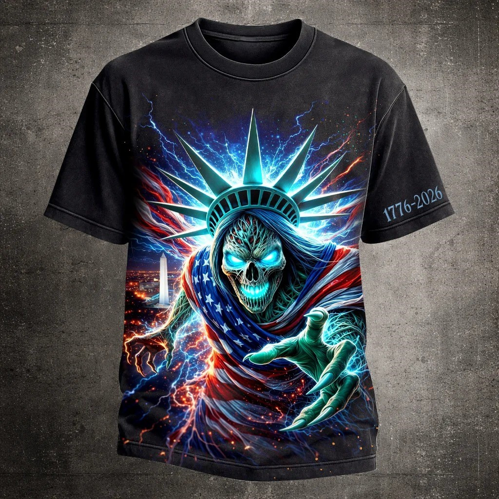 Liberty Of Statue Skull T-Shirt 1776 2026 Horror Merch Gift For Patriotic Friend