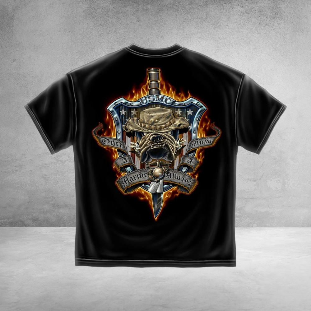 Marine Corps Bulldog Always A Marine T-Shirt Patriotic Military Tee Gifts For Veterans