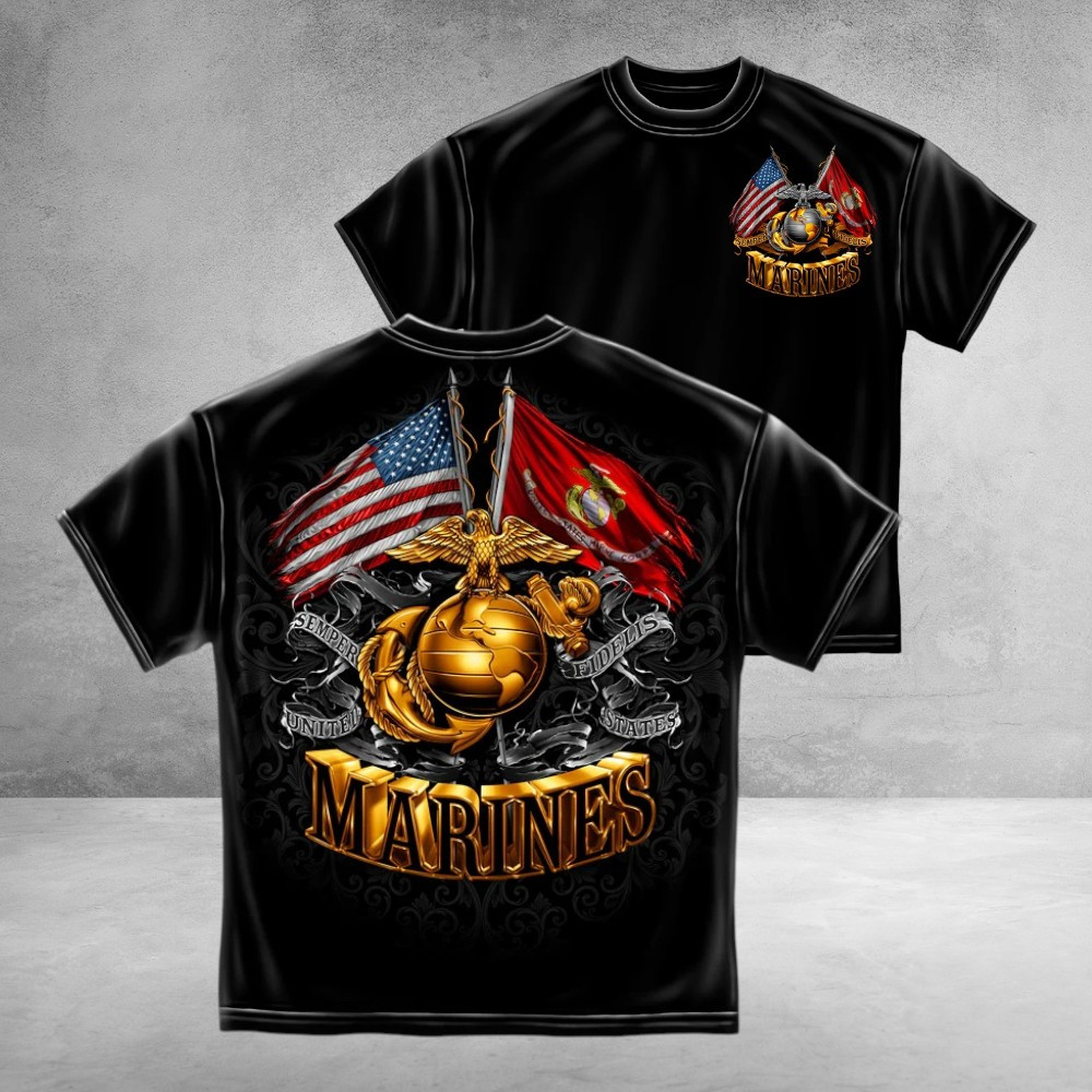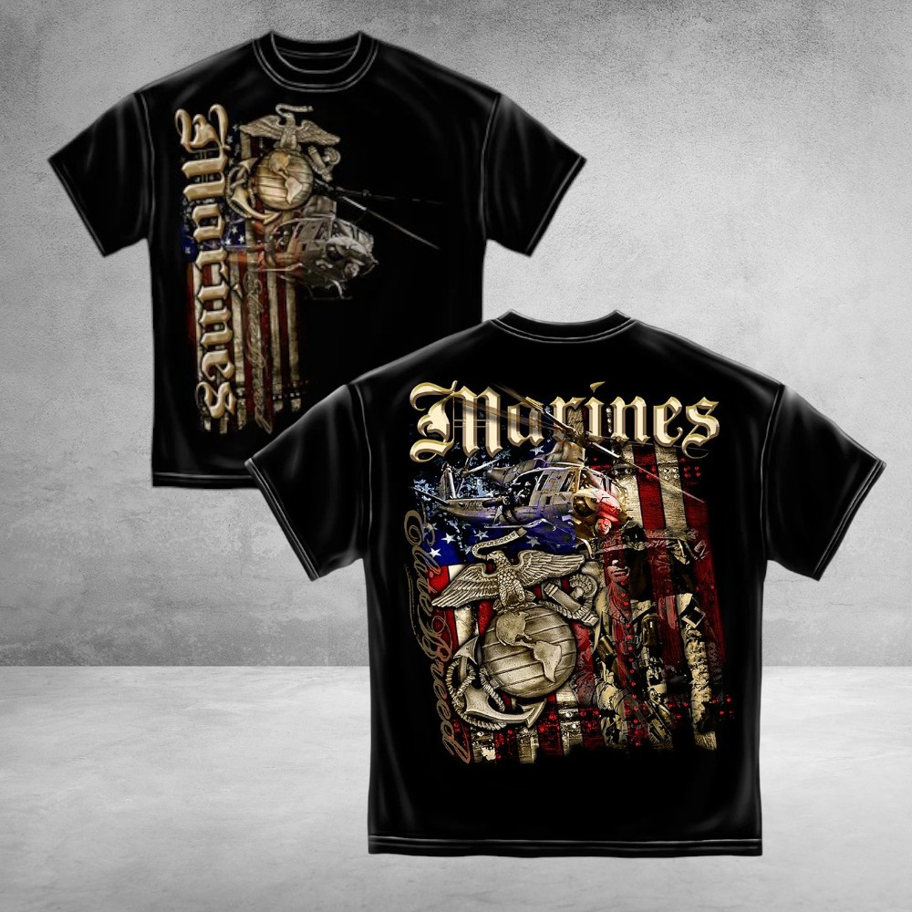 Marine Corps Flag And Chopper T-Shirt Patriotic Military Shirt Gifts For Marine Veterans