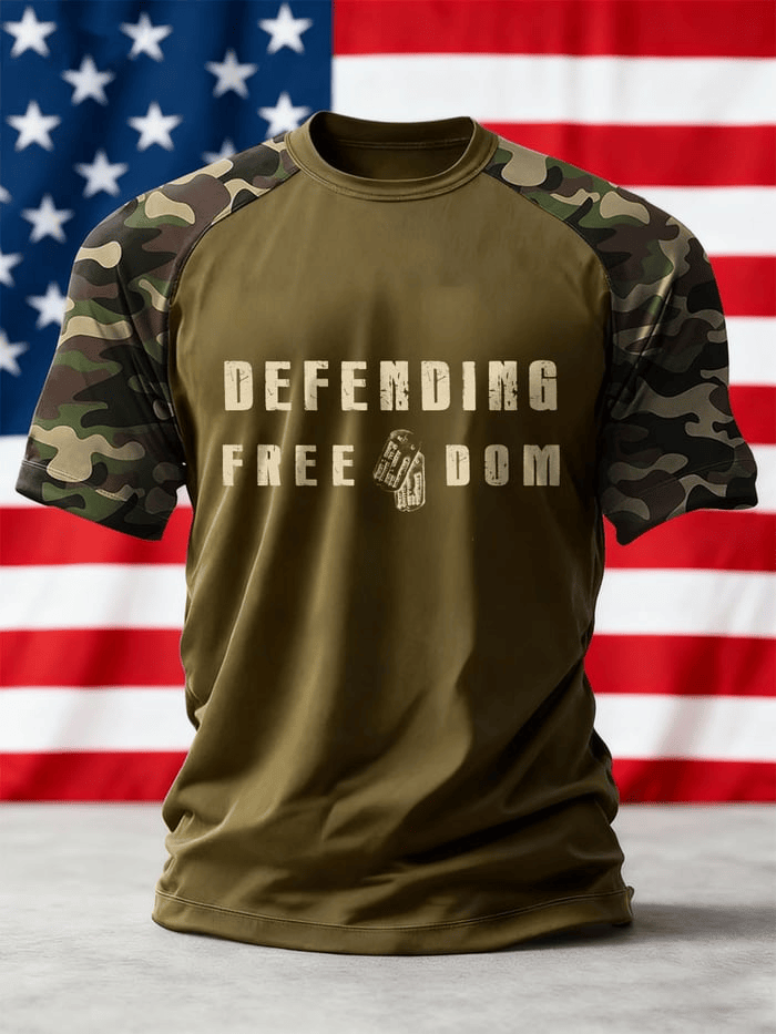 Men’s Veterans Day Defending Freedom Shirt Camo Veteran Day Tee Veretan Day Outfit