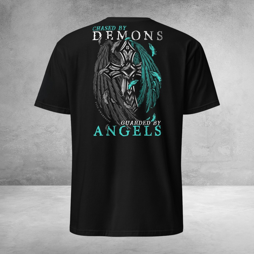 PTSD Awareness Shirt Chased By Demons Guarded By Angels T-Shirt Veterans Gifts Idea
