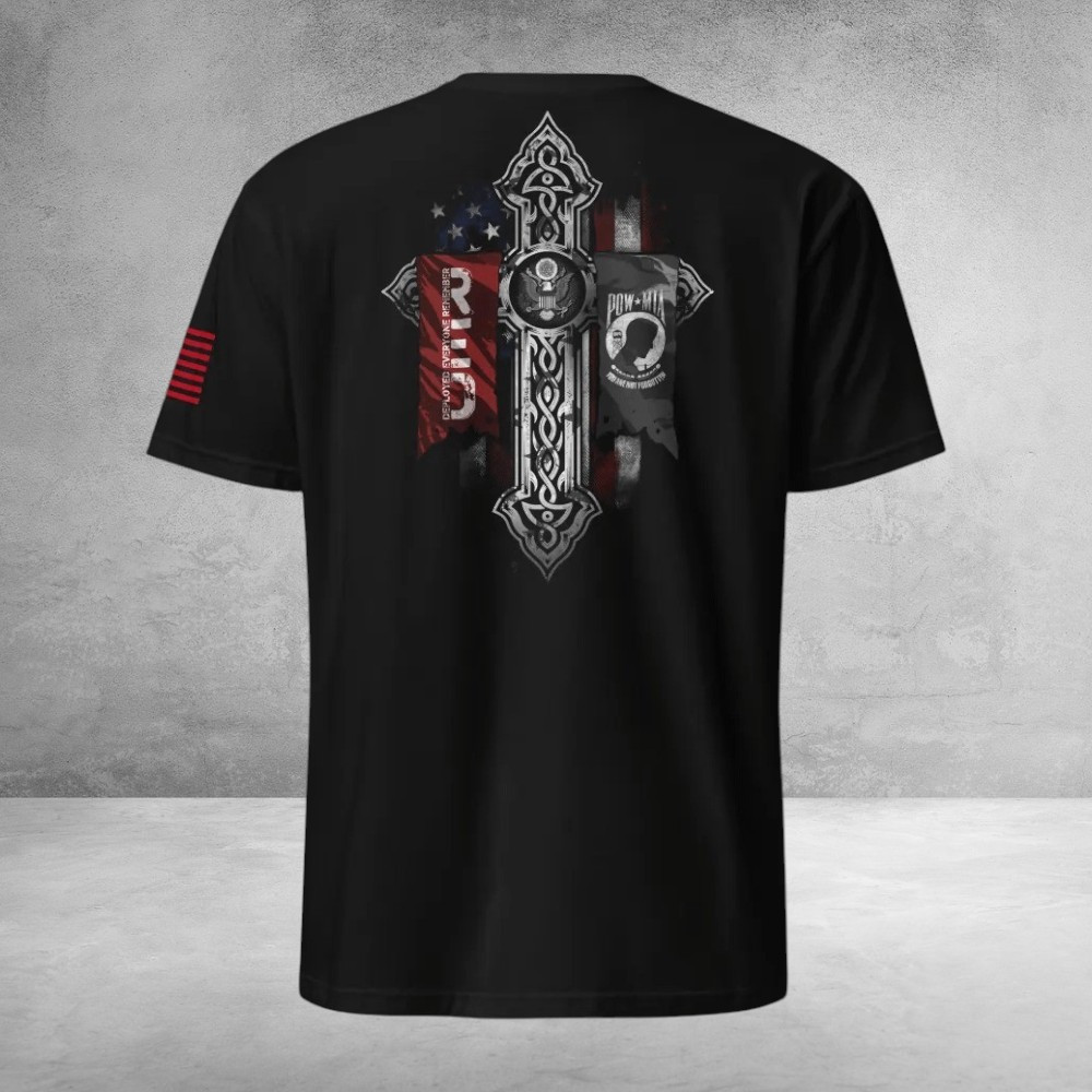 Red Pow Mia Cross T-Shirt Patriotic Style Clothing Military Memorial Gifts For Veterans