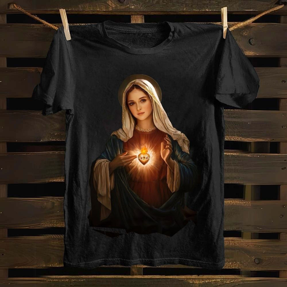 $36.95 – $41.95Price range: $36.95 through $41.95Rosarium Virgin Mary T-Shirt Holy Light Art Style Catholic Spiritual Christmas Gift
