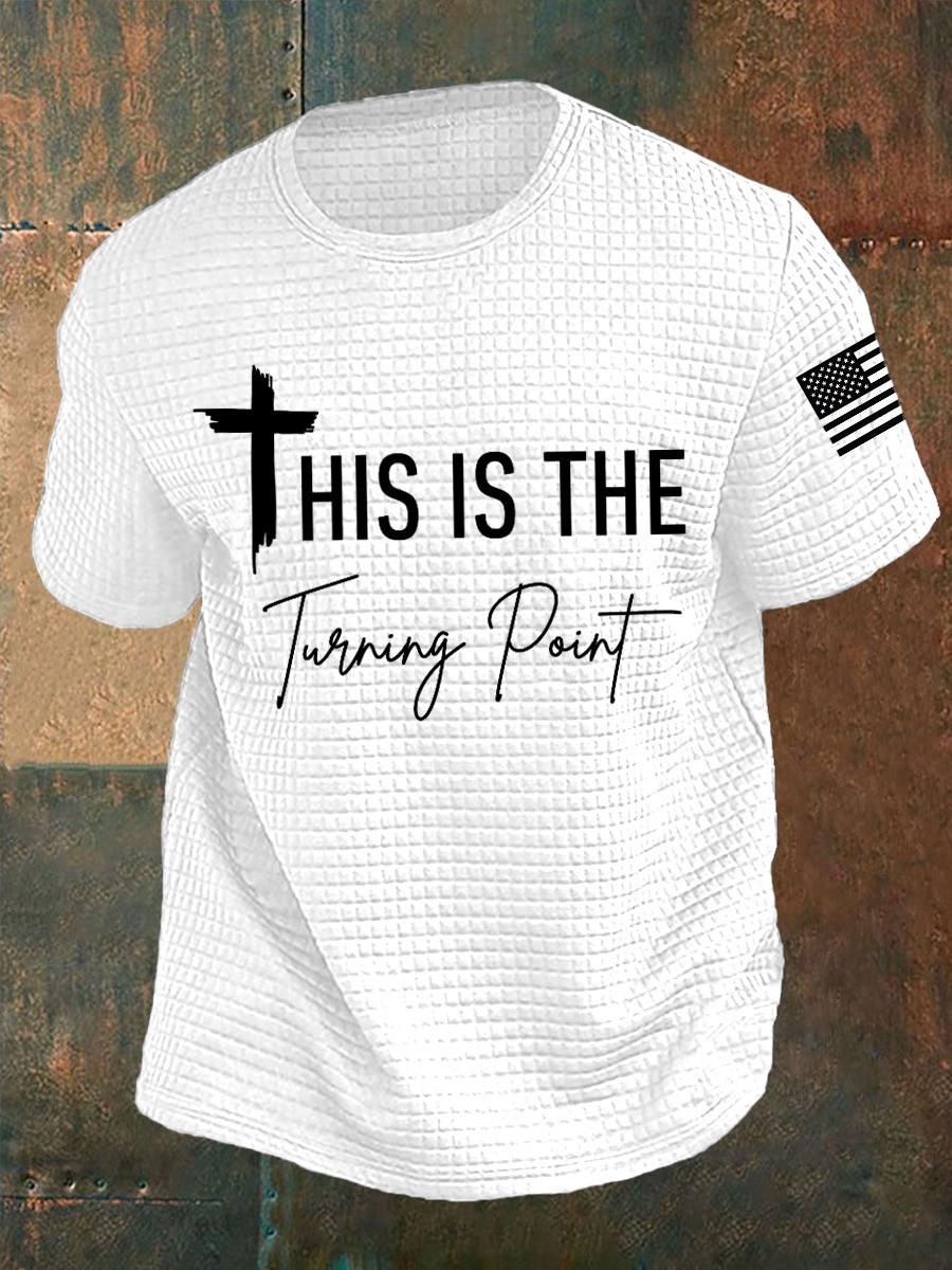 Rushgleam Charlie Kirk This Is The Turning Point Waffle T-Shirt Cross Faith USA Flag Memorial Gifts