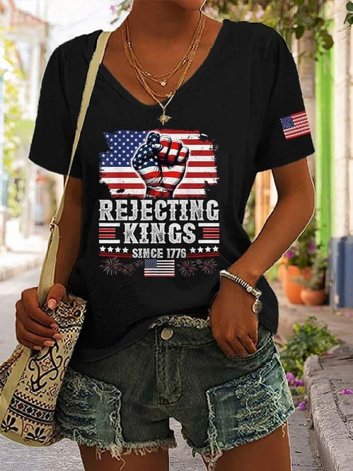 $34.99 – $39.99Price range: $34.99 through $39.99Rejecting Kings V-Neck Shirt America Flag Anti-Authoritarian Patriotic Clothes Gifts For Her