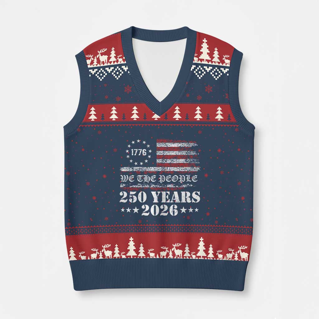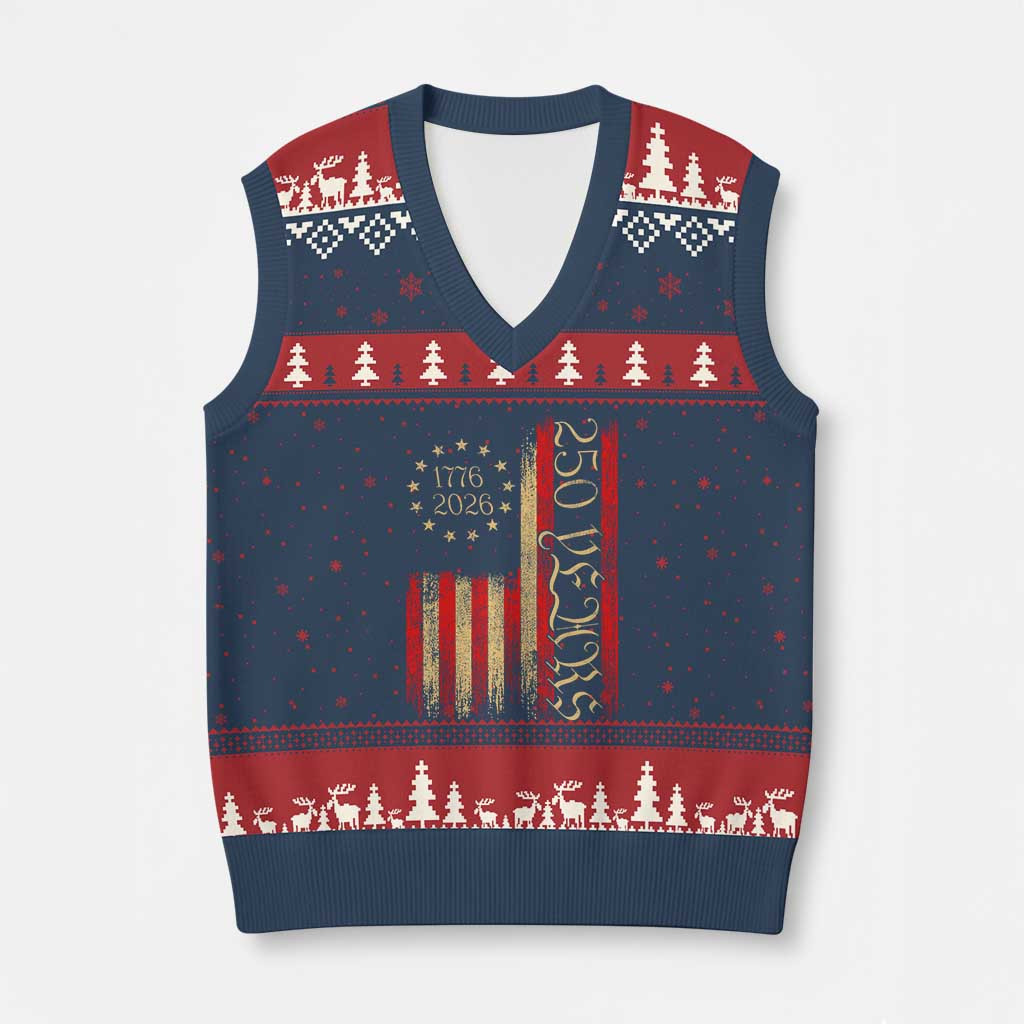 Rushgleam 250 Years 1776 2026 Ugly Christmas V-Neck Knit Sweater Vest Retro Gift For Sister Family
