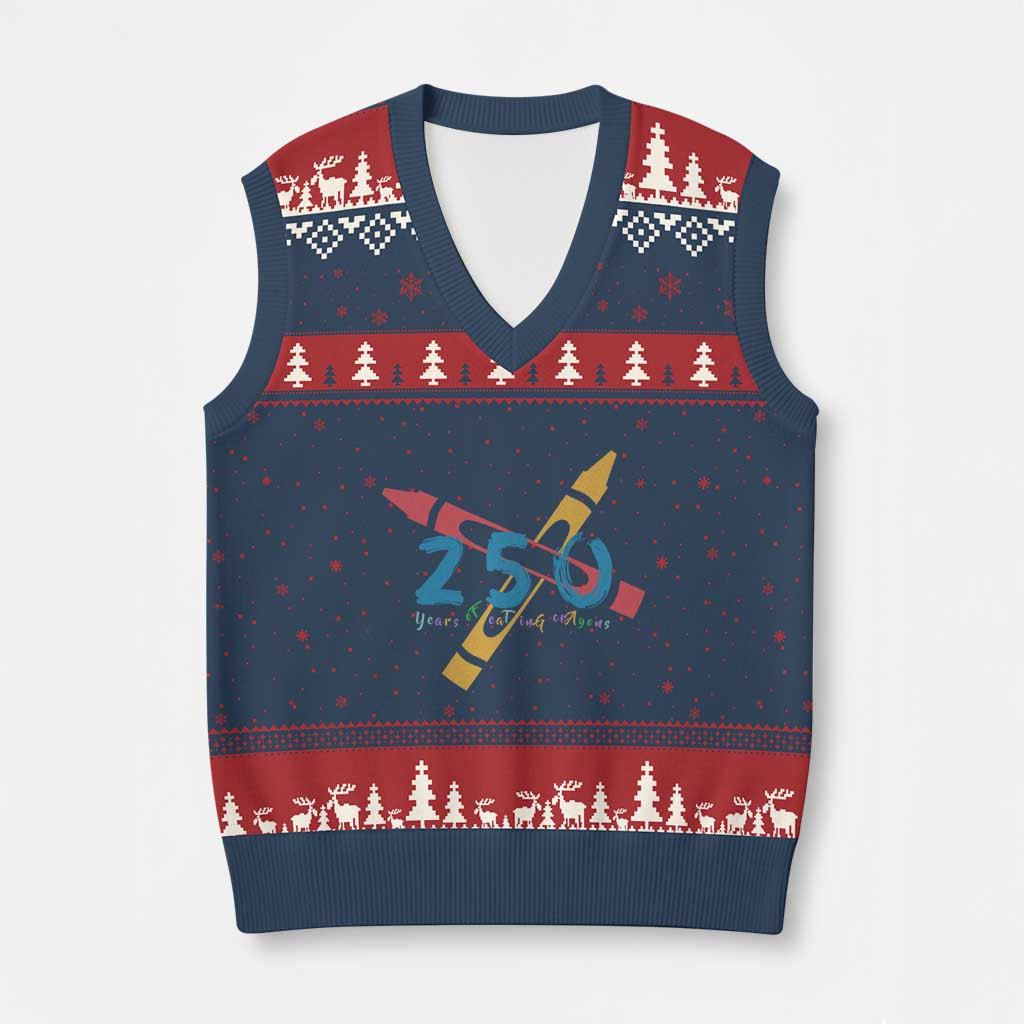 Rushgleam 250 Years Of Eating Crayons Ugly Christmas V-Neck Knit Sweater Vest Funny Military Gift