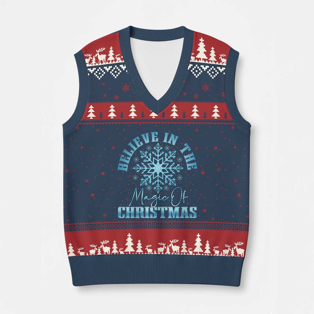 Rushgleam Believe In The Magic Of Xmas Ugly Christmas V-Neck Knit Sweater Vest Snowflake Gift For Baby