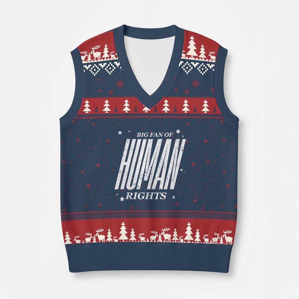 Rushgleam Big Fan Of Human Rights Ugly Christmas V-Neck Knit Sweater Vest Equality Activist Women Gift