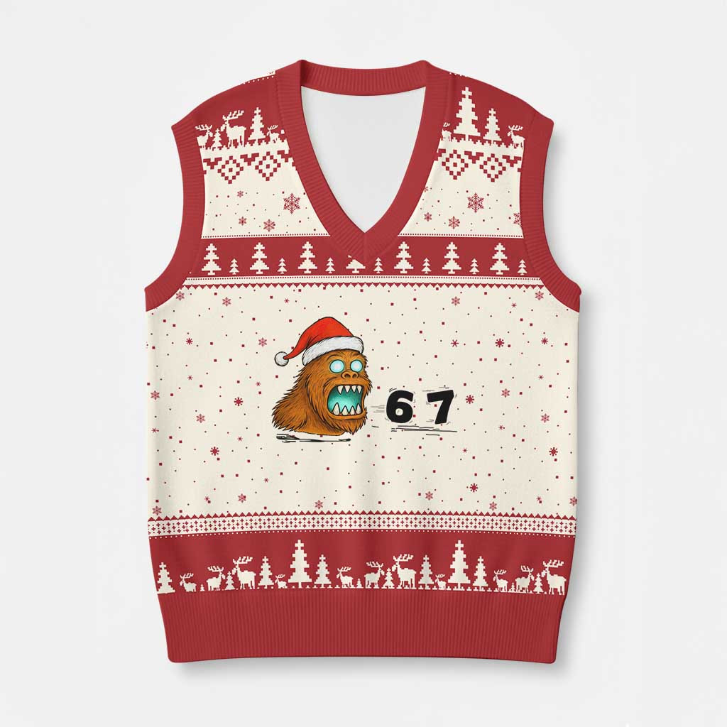 Rushgleam Bigfoot 67 Six Seven Ug’y Christmas V-Neck Knit Sweater Vest Funny Bigfoot Xmas Gift For Kid