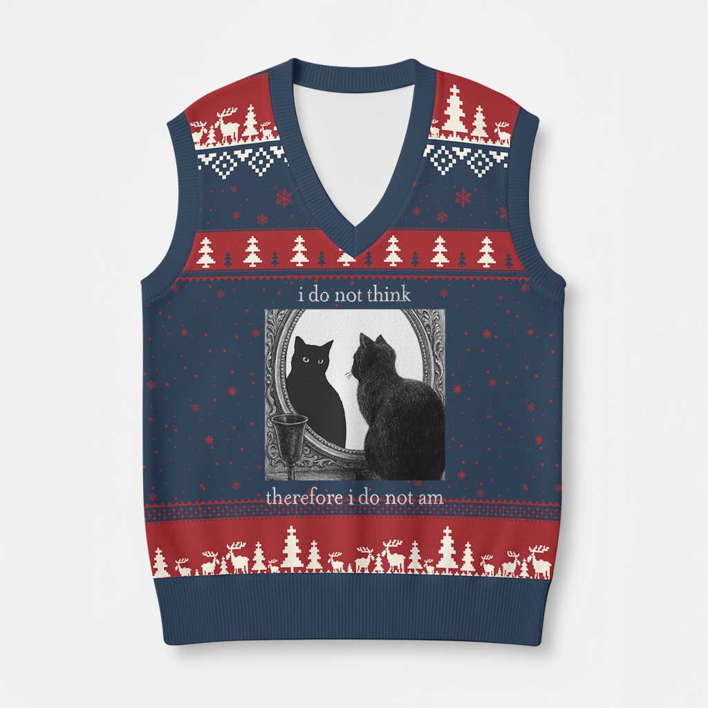 Rushgleam Black Cat Ugly Christmas V-Neck Knit Sweater Vest I Do Not Think Grunge Witchy Gift For Her