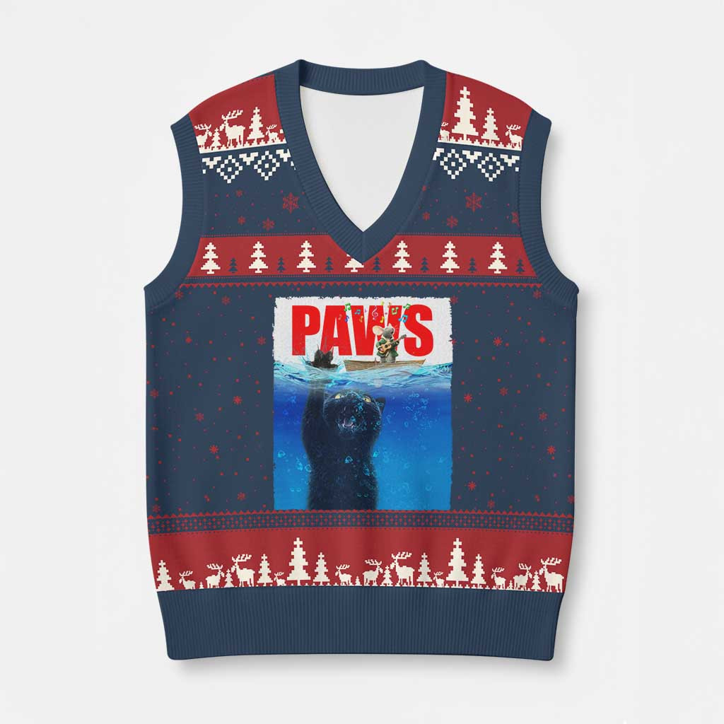 Rushgleam Black Cat Ugly Christmas V-Neck Knit Sweater Vest PAWS Kitten Mouse Humorous Gift For Girls