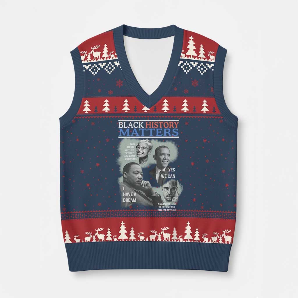 Rushgleam Black History Matters Ugly Christmas V-Neck Knit Sweater Vest Inspirational Tribute Clothing