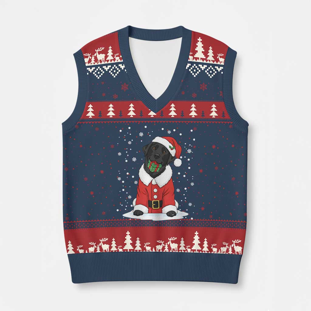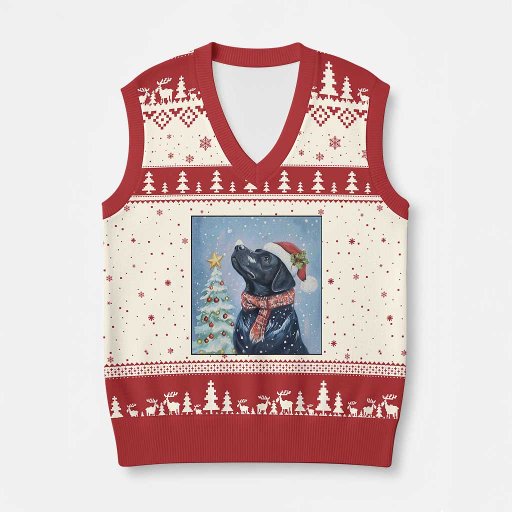Rushgleam Black Lab Ugly Christmas V-Neck Knit Sweater Vest Holiday Dog Lover Gift For Dog Lover