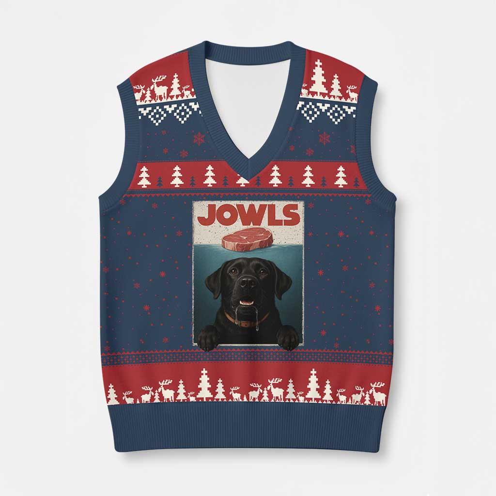 Rushgleam Black Labrador Retriever Jowls Ugly Christmas V-Neck Knit Sweater Funny Horror Dog Gift
