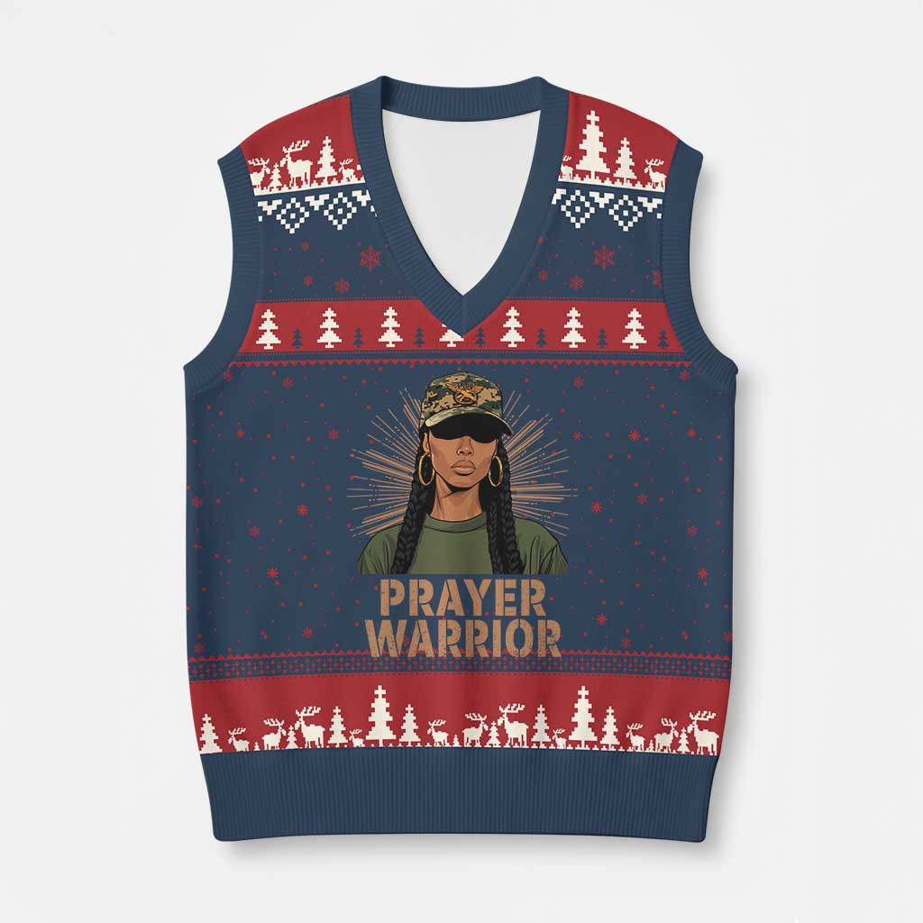 Rushgleam Black Prayer Warrior Ugly Christmas V-Neck Knit Sweater Vest Christian Camo Gift Ideas