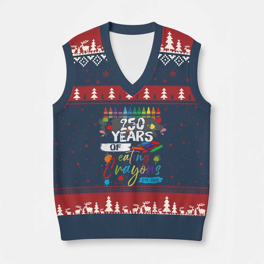 Rushgleam 250 Years Of Eating Crayons Ugly Christmas V-Neck Knit Sweater Vest Veteran Gift Ideas