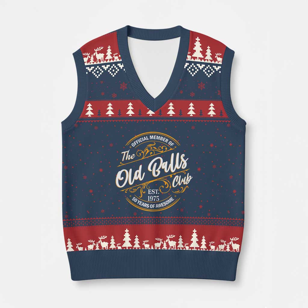 Rushgleam 50th Birthday Ugly Christmas V-Neck Knit Sweater Vest Member The Old Ball Club Gift For Men