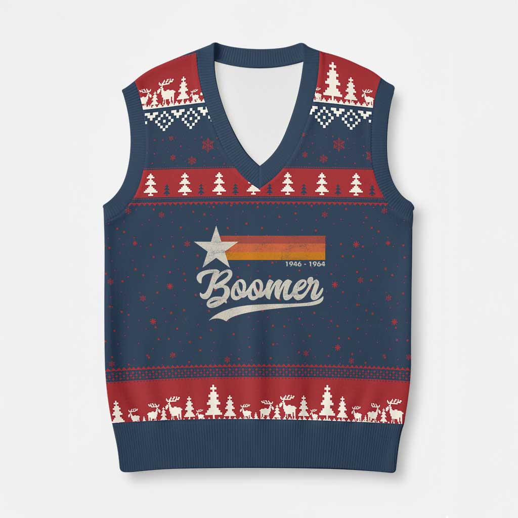 Rushgleam Boomers Generation Ugly Christmas V-Neck Knit Sweater Vest Vintage Retro Gift For Parent