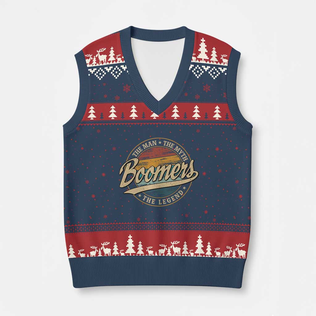 Rushgleam Boomers The Man The Myth The Legend Ugly Christmas V-Neck Knit Sweater Grandpa Gift Ideas