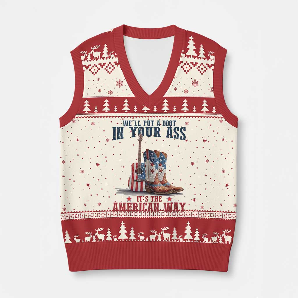 Rushgleam Boot In Your Ass Ugly Christmas V-Neck Knit Sweater Vest Way Country Style Gift For Him