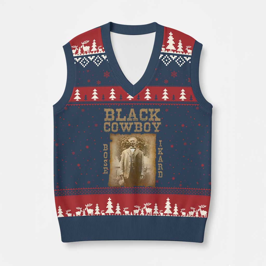 Rushgleam Bose Ikard Ugly Christmas V-Neck Knit Sweater Vest Black Cowboy Clothes For Husband