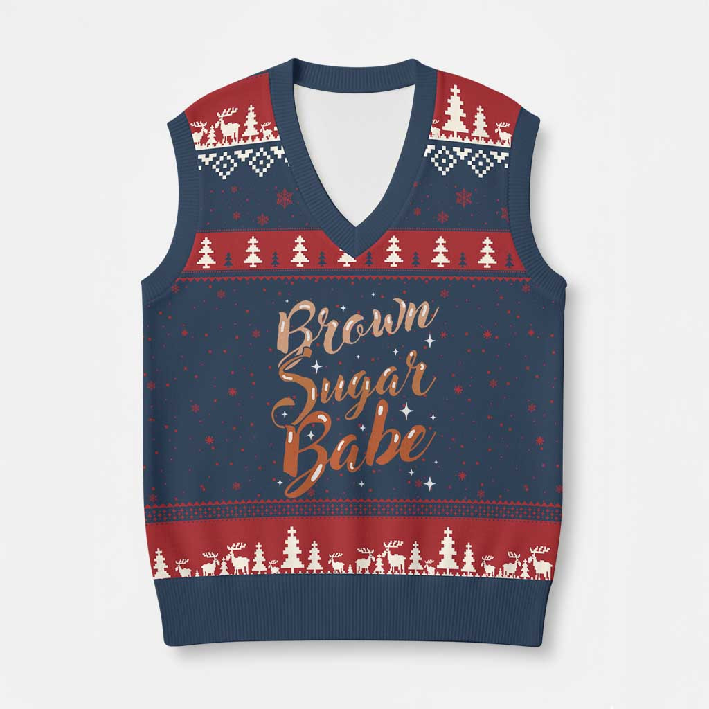 Rushgleam Brown Sugar Babe Ugly Christmas V-Neck Knit Sweater Proud Woman Melanin Pride Gift