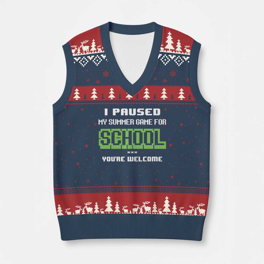 Rushgleam Bruh Back To School Ugly Christmas V-Neck Knit Sweater Vest Here We Go Again Gift For Men