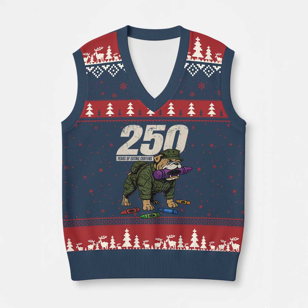 Rushgleam Bulldog 250 Years Of Eating Crayons Ugly Christmas V-Neck Knit Sweater Gift For Veteran Bro