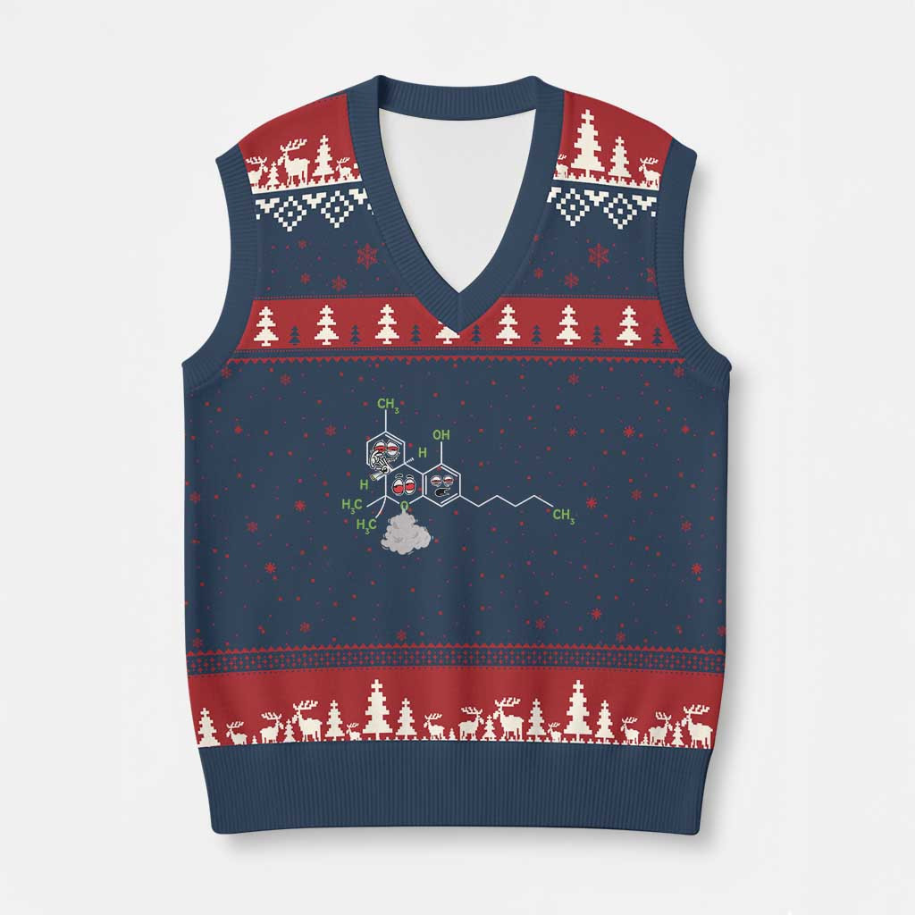 Rushgleam Cannabis Weed Ugly Christmas V-Neck Knit Sweater Vest Molecule THC Gift For Teenager