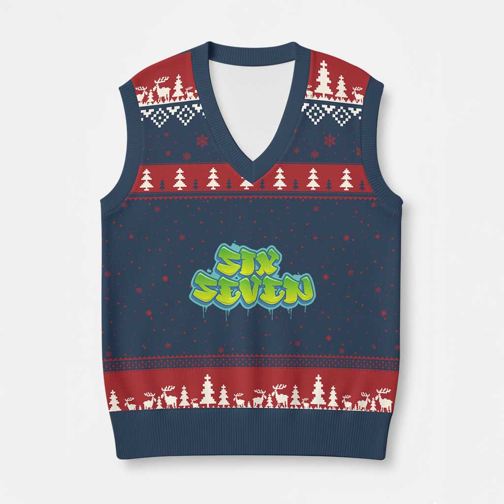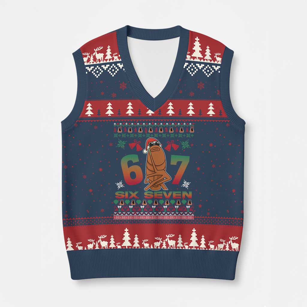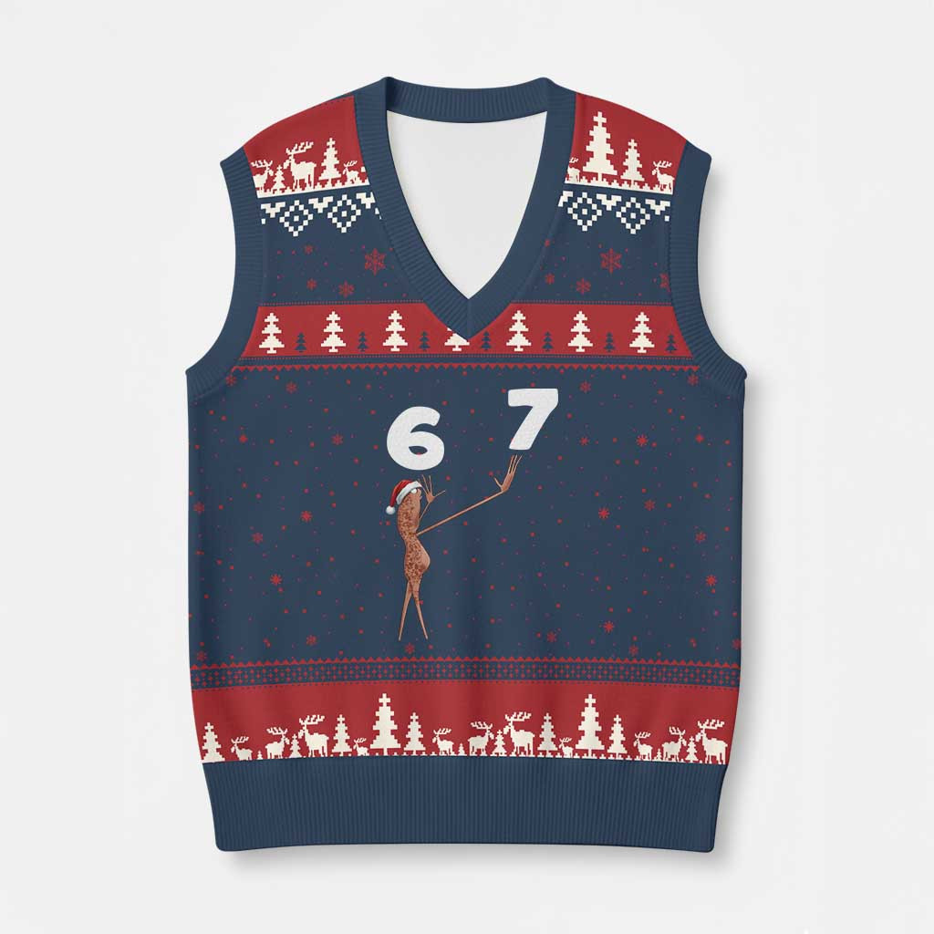 Rushgleam 67 Six Seven Ugly Christmas V-Neck Knit Sweater Vest Funny Football Meme Gift For Boy