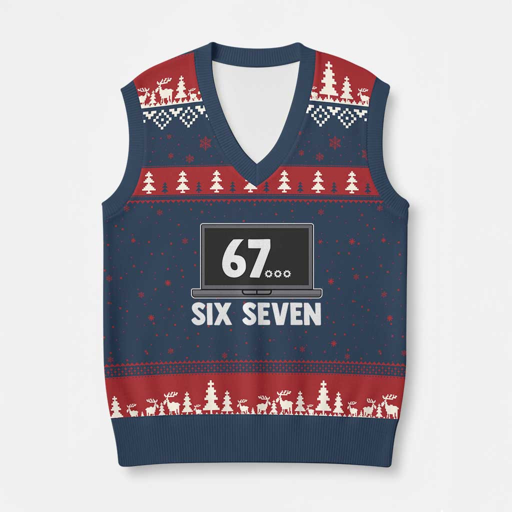 Rushgleam 67 Six Seven Meme Ugly Christmas V-Neck Knit Sweater Vest Funny Tech Support Gift Ideas