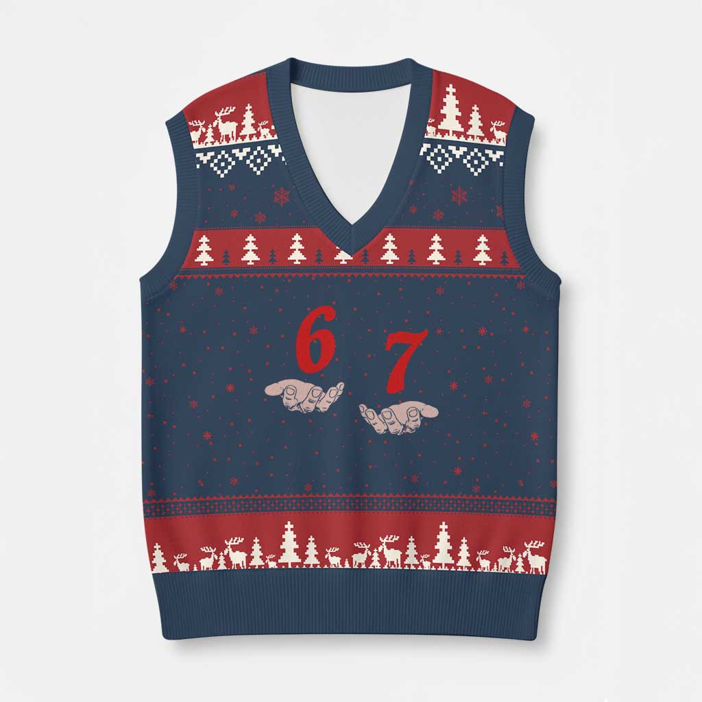 Rushgleam 67 Six Seven Meme Ugly Christmas V-Neck Knit Sweater Vest Hands Gesture Gifts For Sister