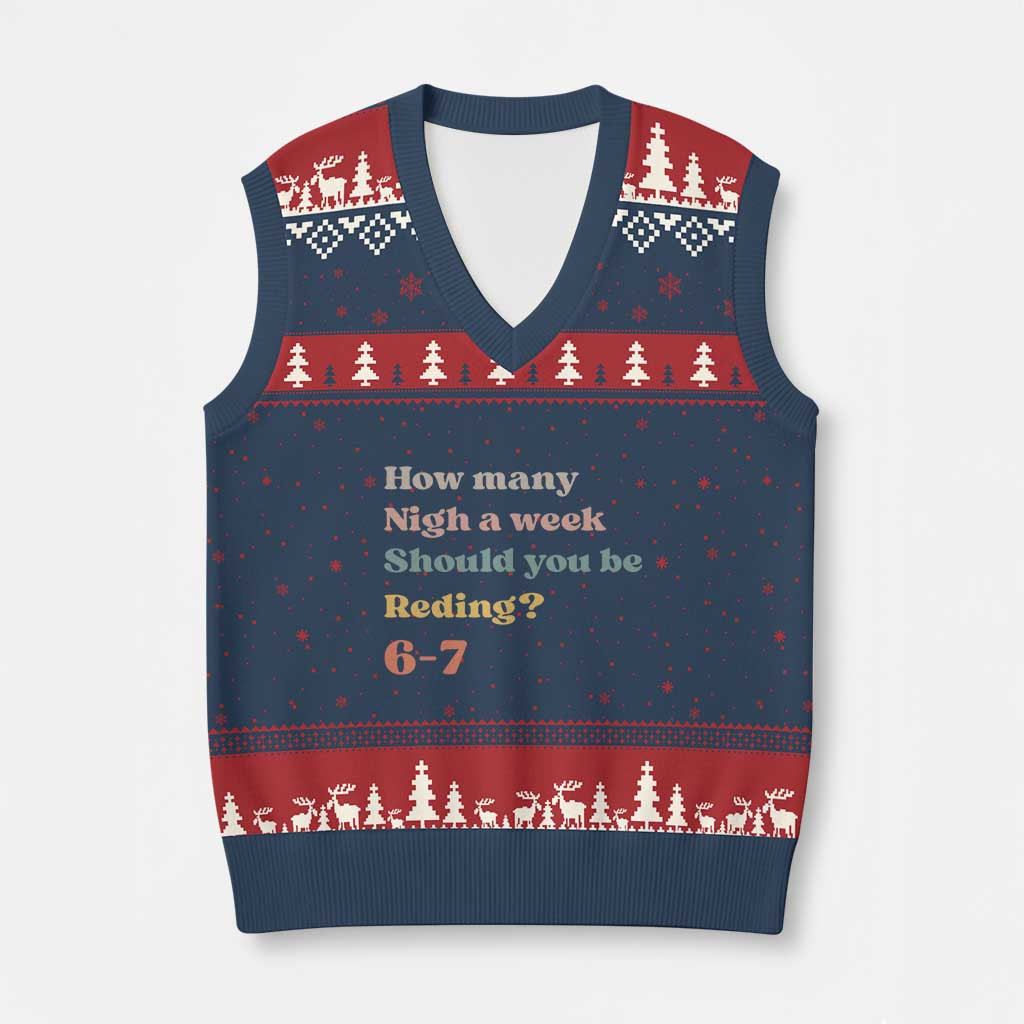 Rushgleam 67 Six Seven Meme Ugly Christmas V-Neck Knit Sweater Vest Funny Gift For Book Lover