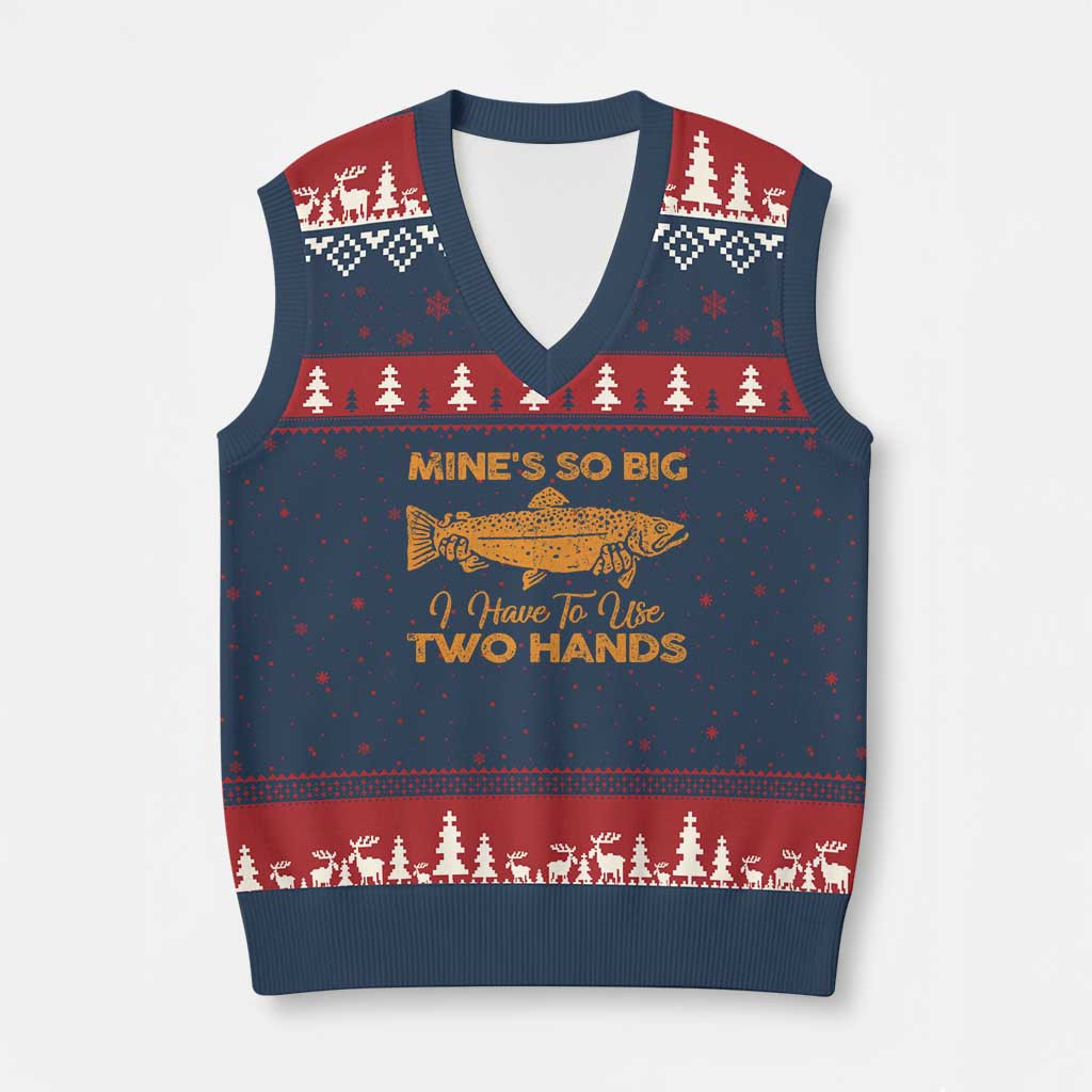 Rushgleam Fishing Ugly Christmas V-Neck Knit Sweater Vest Mine’s So Big Gag Gift For Adults