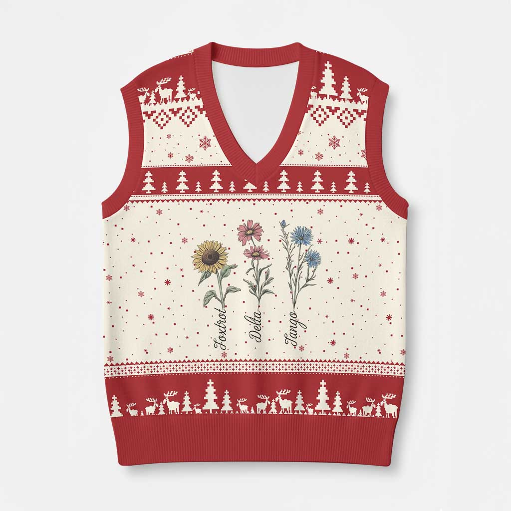 Rushgleam Floral Foxtrot Delta Ugly Christmas V-Neck Knit Sweater Vest Tango Retro Gift For Girls