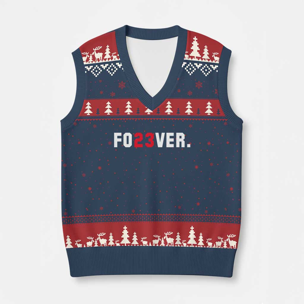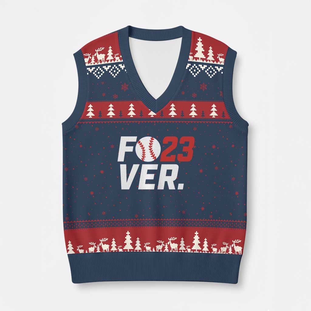 Rushgleam Fo23ver Ugly Christmas V-Neck Knit Sweater Vest Vintage Sports Fan Gift Ideas