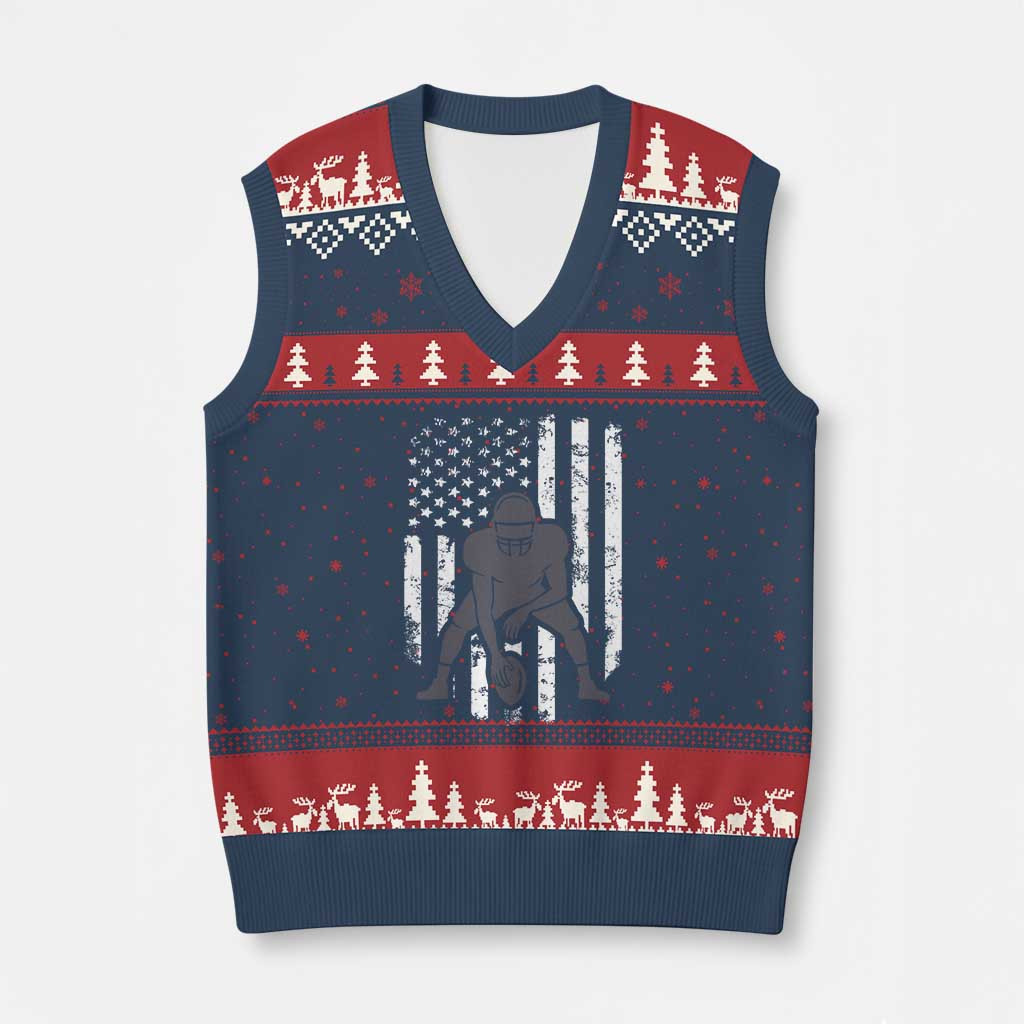 Rushgleam Football Player Ugly Christmas V-Neck Knit Sweater Vest Distressed Vintage Presents For Men