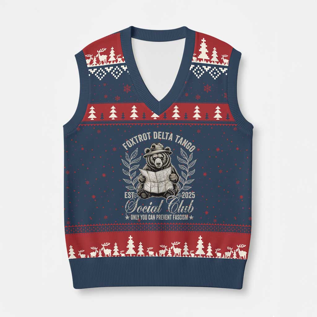 Rushgleam Foxtrot Delta Tango Ugly Christmas V-Neck Knit Sweater Vest Only You Retro Bear Gift For Men