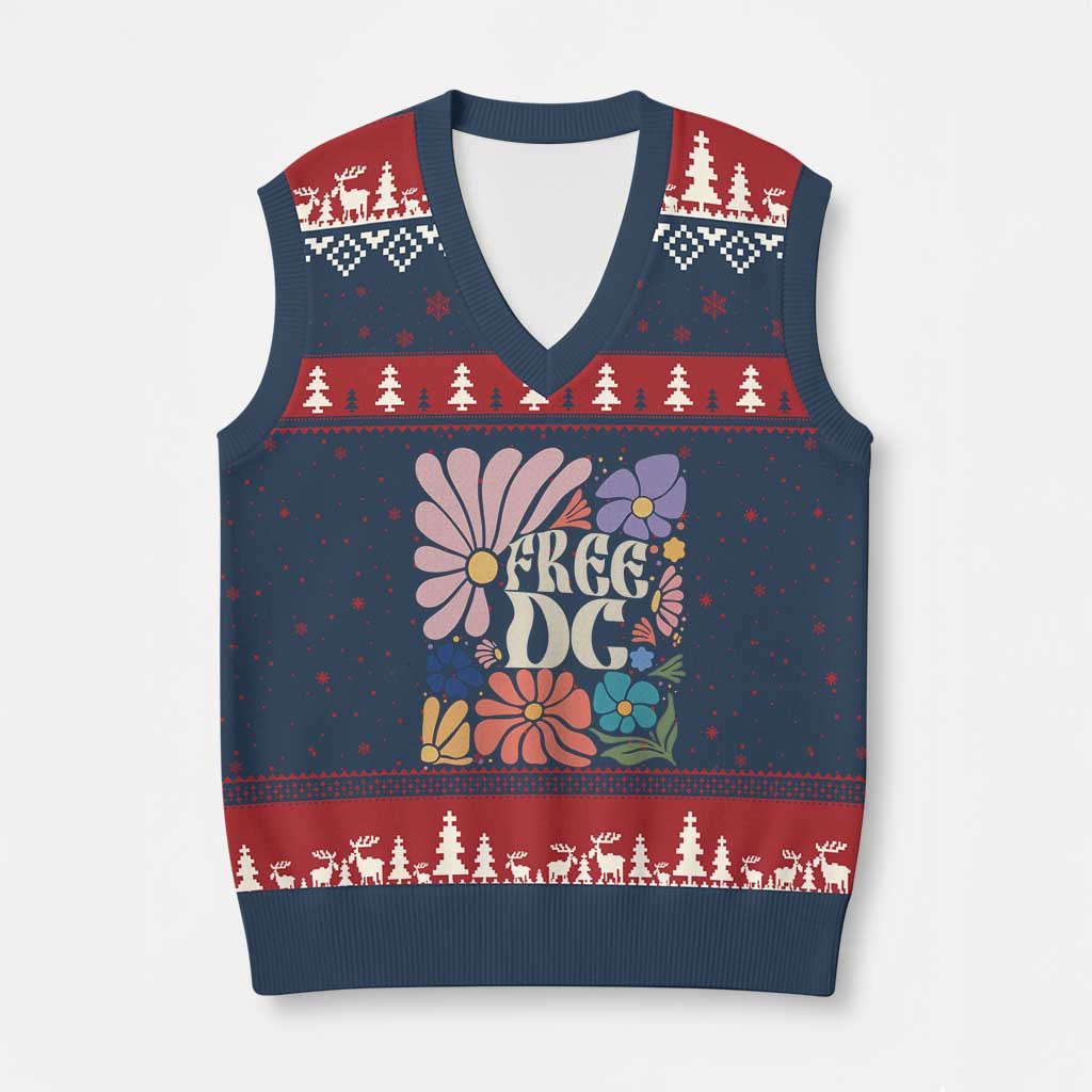 Rushgleam Free DC Ugly Christmas V-Neck Knit Sweater Vest Defend Washington DC Gifts For Employee